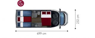 Voyagez dans le confort et le style. Notre camping-car pour 4 personnes est le choix idéal pour les familles ou les groupes qui explorent l’Islande. Profitez du confort et du luxe du camping en Islande dans un tout nouveau et luxueux camping-car. Les camping-cars pour 4 personnes sont conçus avec soin et comportent non pas un, mais deux espaces de couchage : un à l’avant, dans la capucine, et un à l’arrière. Le point fort est le lit rabattable qui tombe élégamment du toit, garantissant une nuit de sommeil douillette. De plus, vous avez le choix entre un lit double fixe ou des lits séparés qui peuvent être joints à l’arrière pour plus de flexibilité.